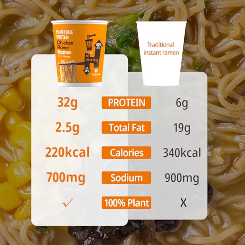 About this item 32g Plant Protein per Serving – Fuel your day with a satisfying bowl of high-protein chicken-flavored ramen, packed with 32g of veg